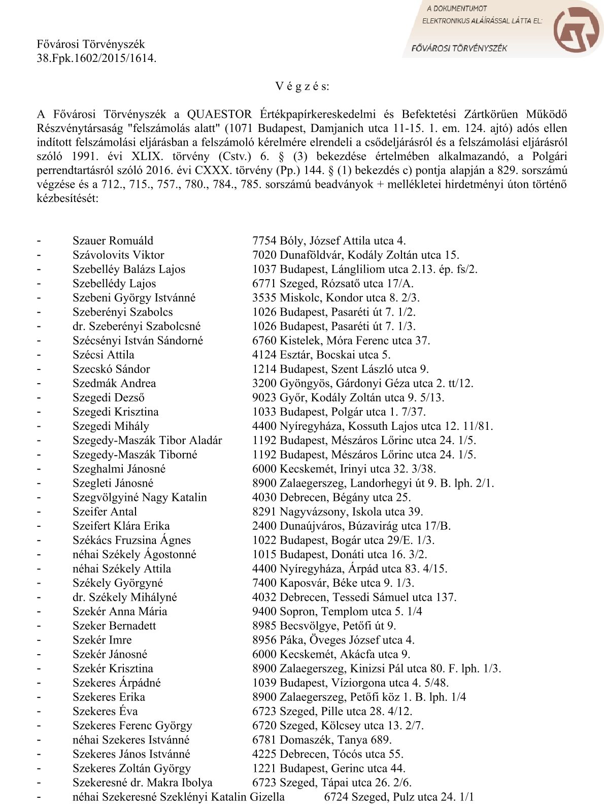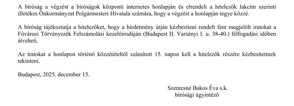 HIRDETMÉNY: Fővárosi Törvényszék végzéséről