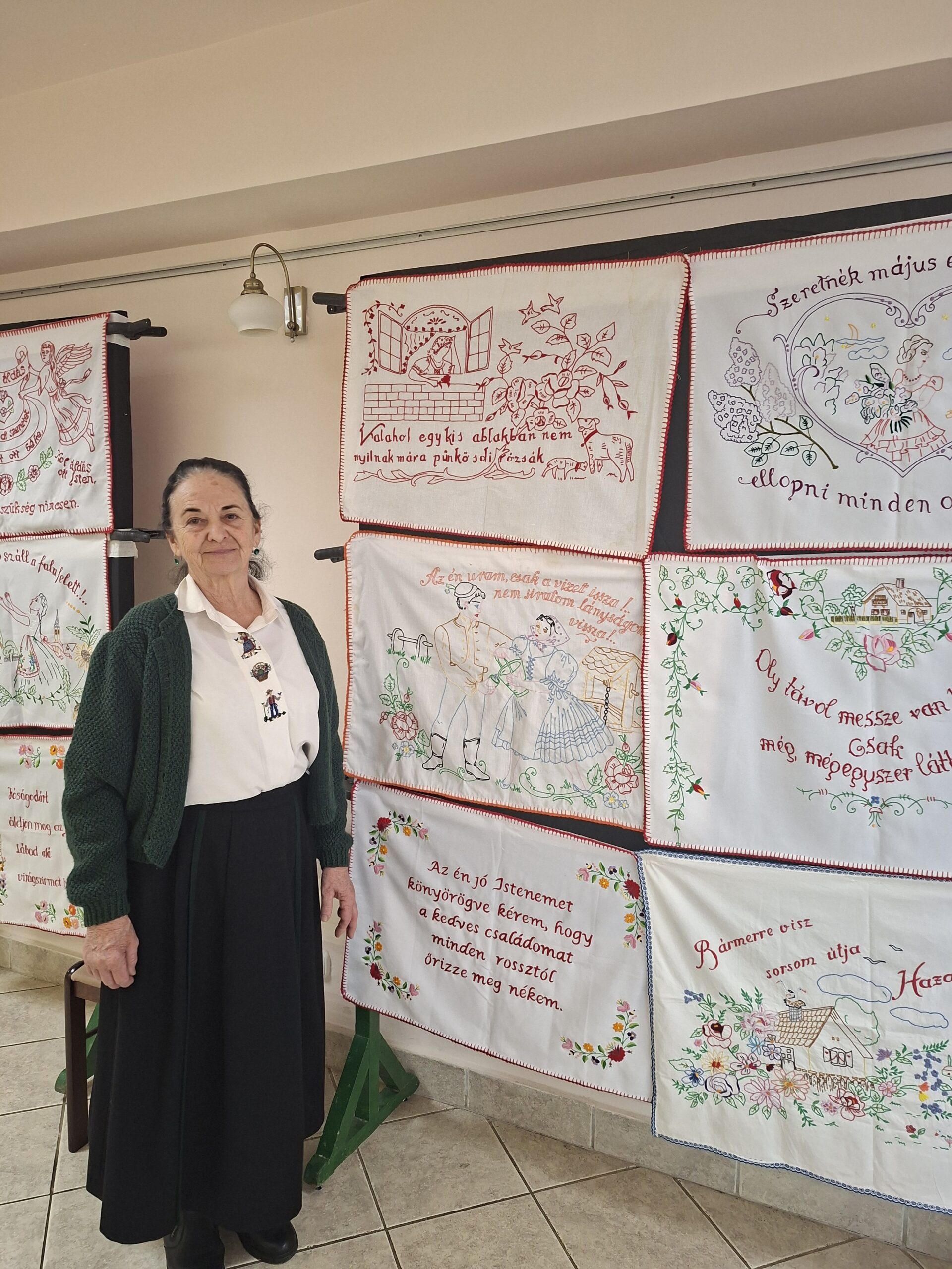 Különleges élményt nyújtott a régi falvédők kiállítása, melyeken népi bölcsességek és jókívánságok elevenedtek meg. A gyűjteményt Sorosánszki Jánosné Etelka bocsátotta rendelkezésünkre.