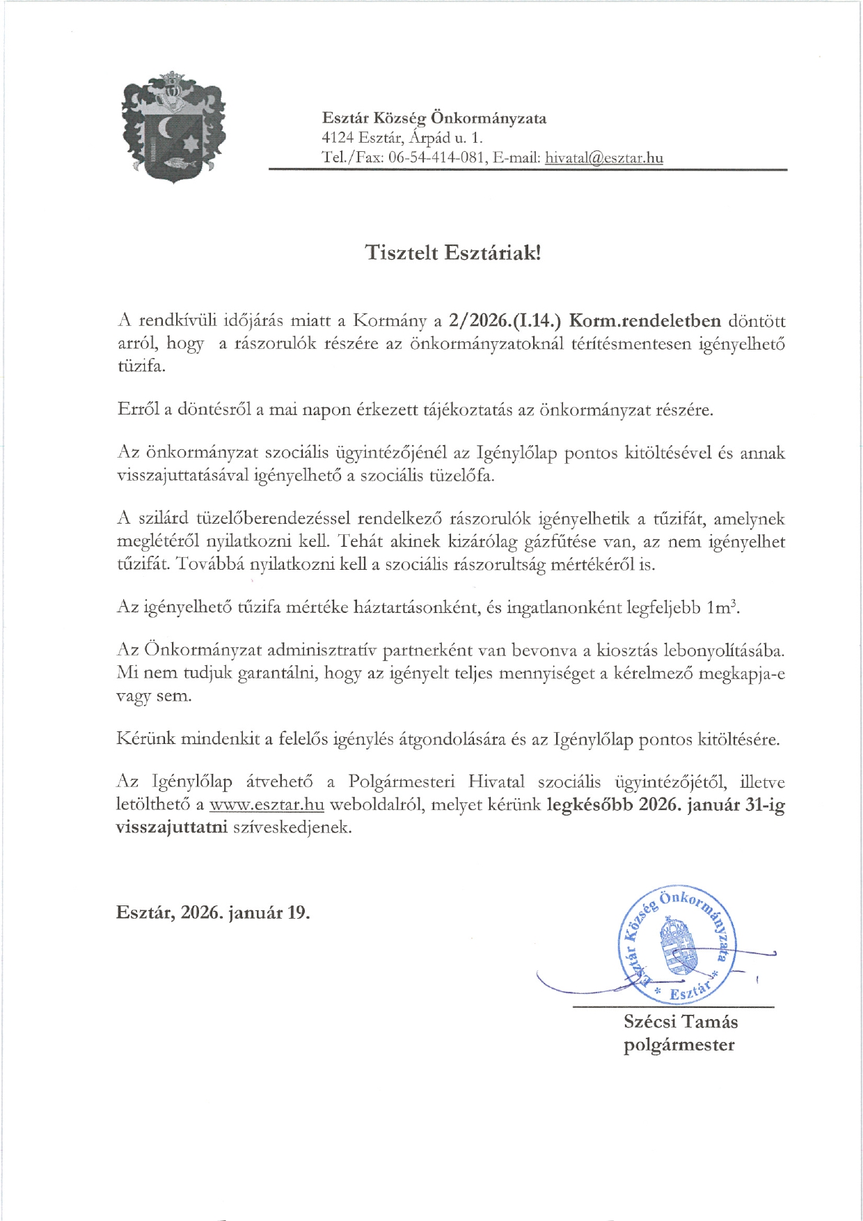 Tüzifa igénylés! 2026.01.19.Civil kurázsi,Civil oldal,Egyéb kategória,Esztár infó,Hírek,Közösségi élet Az alábbi linken érhető el az igénylőlap. tüzifa igénylőlap