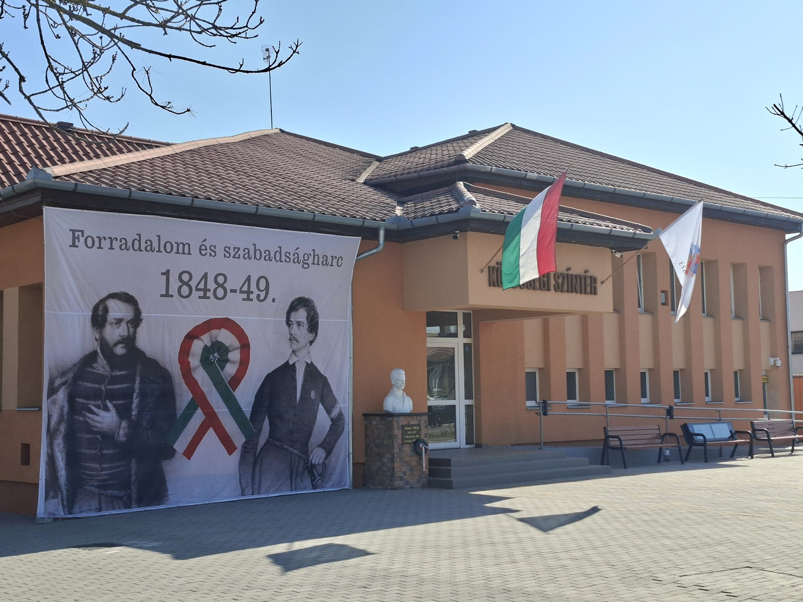 A Közösségi Színtér is ünnepi külsőt kapott a márciusi ifjak tiszteletére. 🇭🇺